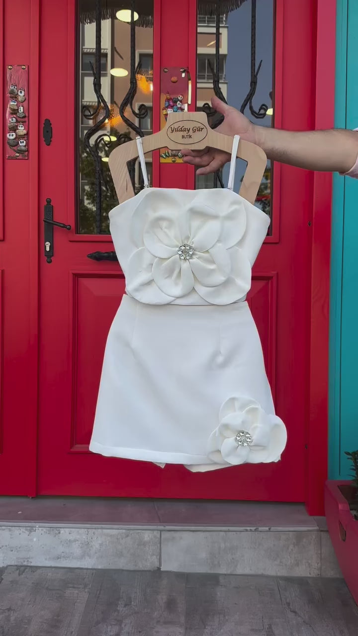 Açıklama:Çiçek detaylı özel tasarım crop ve etek takım, zarif Fransız stilini yansıtan ithal bir üründür....