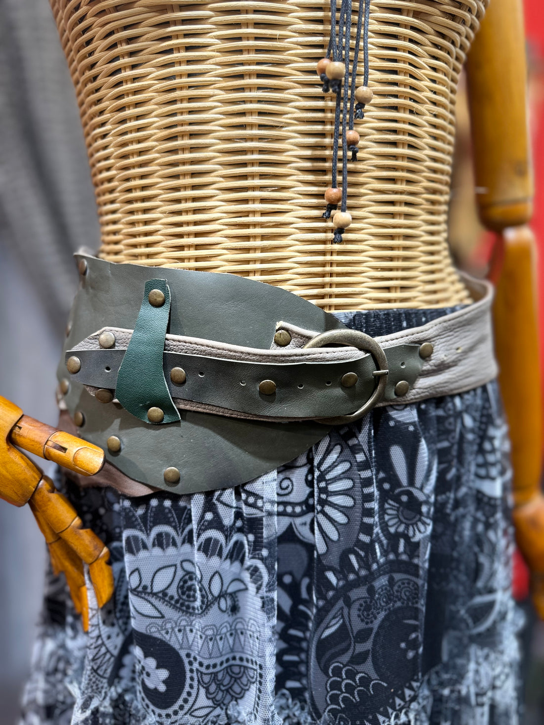 Ivy Deri Kemer | Yeşil Ton Hakiki Deri El Yapımı Bohem Bel Kemer